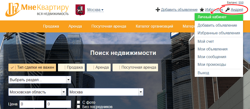 Зайдите в личный кабинет с помощью меню, как показано на иллюстрации ниже.